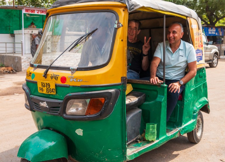 Fellow traveler Neil and Journey Chief Hashmat Singh share a tuk-tuk in Jodhpur.