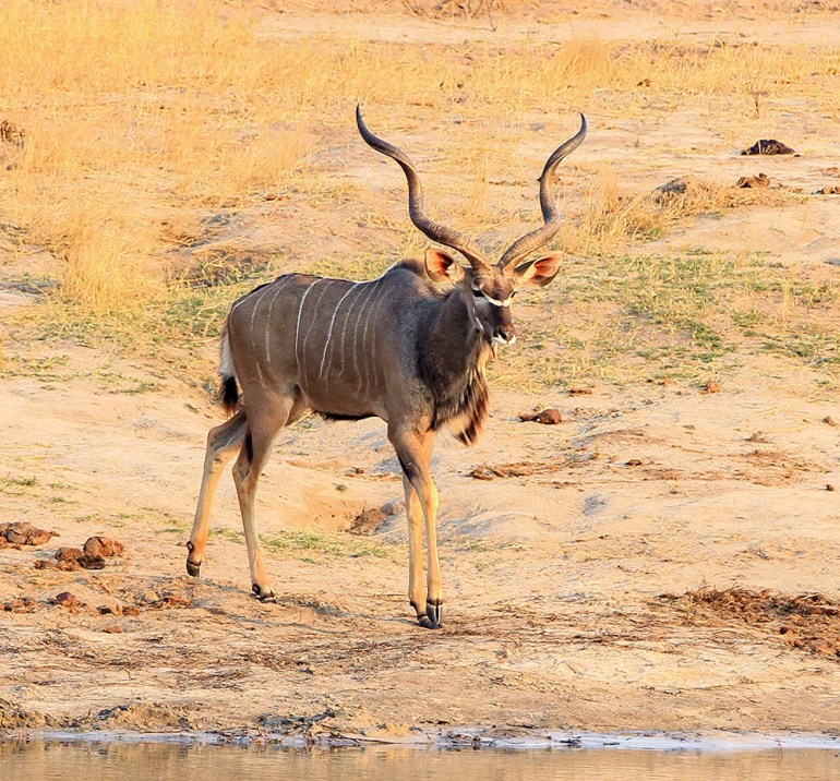 Because the solar units, some zebra and a kudu skittishly method the watering gap.