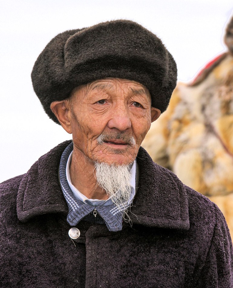 Many former, now aged, eagle hunters attend the competition as spectators.