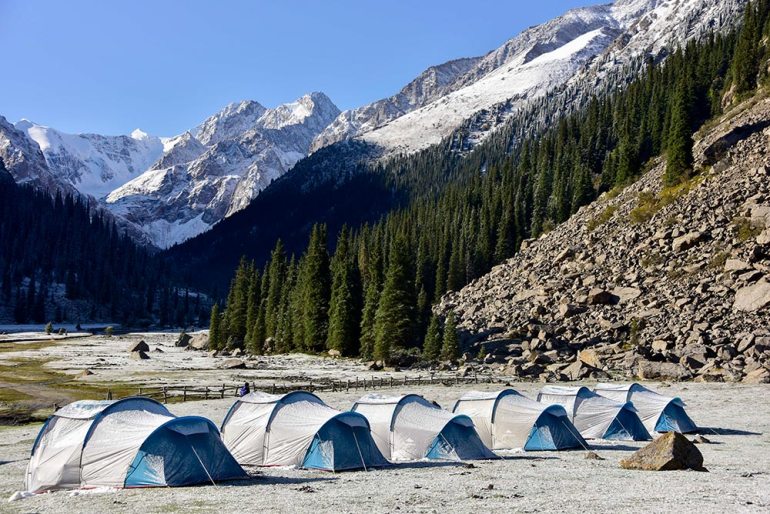 We arrange a deluxe camp for 2 nights within the Kuzl Su valley with stand-up tents with cots and even a “Banya,” a Russian-style tented sauna!