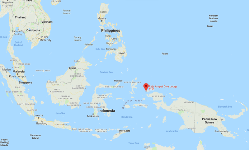 I’ve pinned the placement of the Raja Ampat Dive Lodge for context. As you may see, it’s distant and in a really unique location. This alone is what makes it each costly, but well worth the effort to go to.