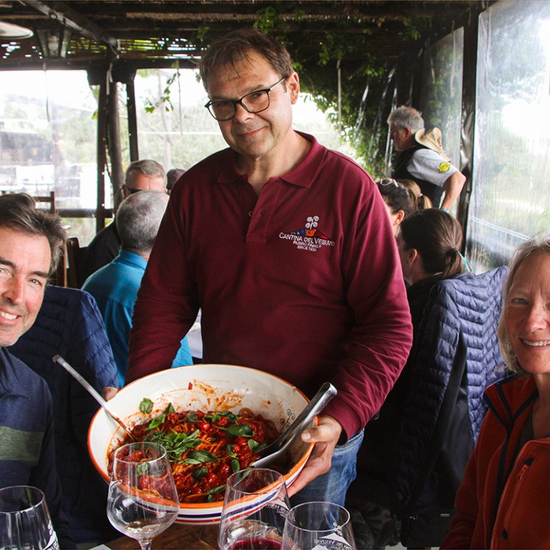 We lunched at a family-owned winery on the volcano’s slope earlier than returning to Naples for a Farewell Dinner. A poster on the winery stated “Wine improves with age. The older I get, the extra I prefer it!” It’s onerous to disagree!
