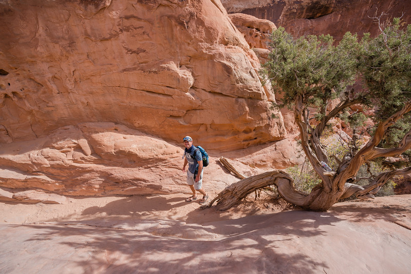 Strolling alongside the fin canyon on our strategy to Double O Arch