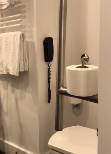 - The bathroom space meets ADA normal however is sort of unimaginable to switch to with out smacking your head towards the wall. There’s additionally no leg room if you happen to sit on the bathroom.